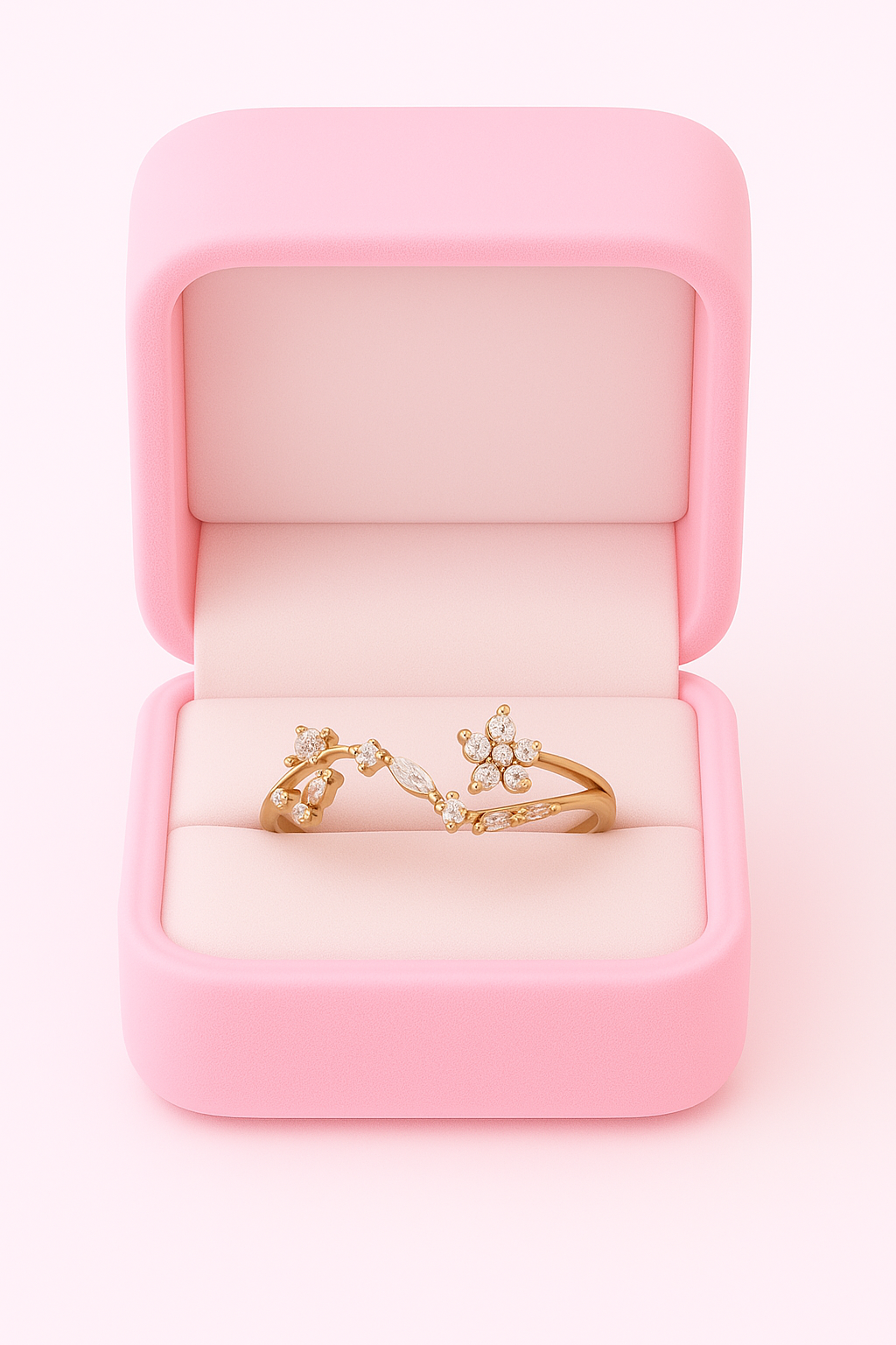 Beautiful flower-style ring with shiny diamonds and pearls.